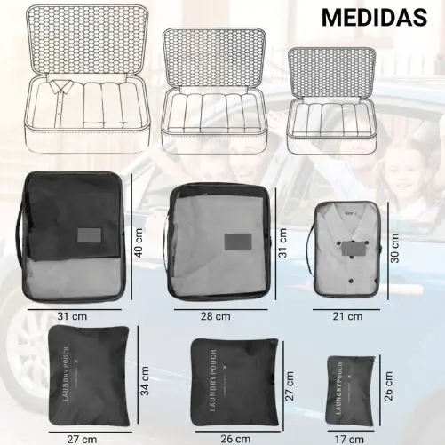 Diseñado para optimizar cada centímetro de tu valija, este set permite separar prendas limpias de la ropa sucia, proteger calzado y organizar accesorios electrónicos o cosméticos. Gracias a su confección con paneles de malla, tus prendas se mantienen ventiladas y podés identificar el contenido de cada bolso en segundos sin necesidad de abrirlos.